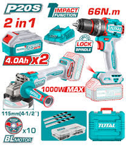 KIT TALADRO PERCUTOR 66 Nm Y AMOLADORA 20V.