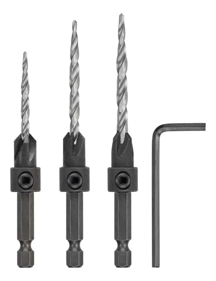 AVELLANADORA HSS EN JUEGO X 3 PZS : #6 #8 #10 BROCAS CONICAS HSS M2 APTA MADERAS DURAS