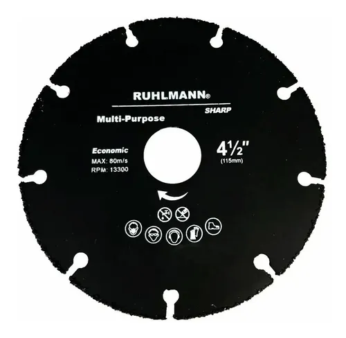 DISCO CORTE MULTIMATERIAL PARA AMOLADORA DE 115MM MADERA PLASTICO CLAVOS NEGRO GUILLER®