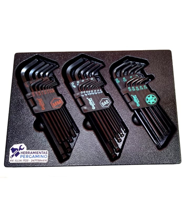 LLAVES ALLEN X 35 PZS. MÉTRICAS - PULGADAS - TORX CR-V LARGAS - GUILLER®
