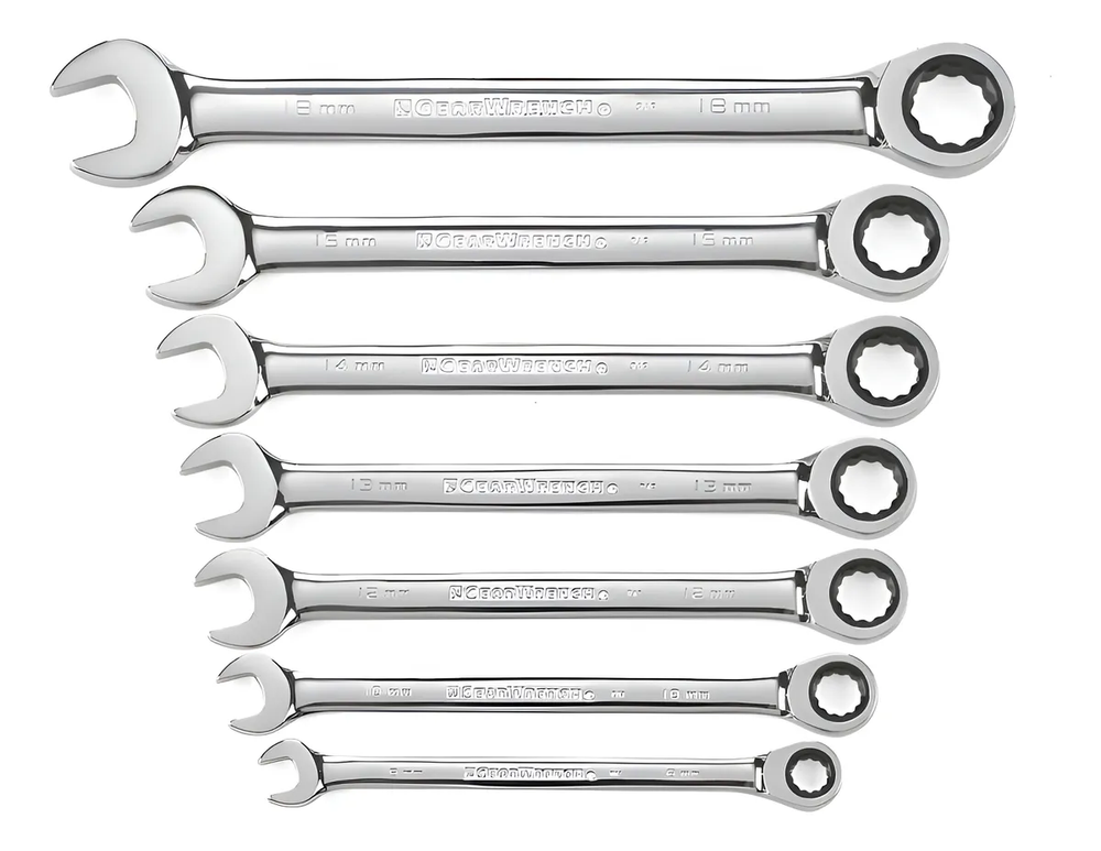 LLAVES COMBINADAS CON CRIQUE EN SET X 7 PIEZAS 8, 10, 11, 13, 14, 17, 19MM MATERIAL CRV GUILLER® PROFESIONAL