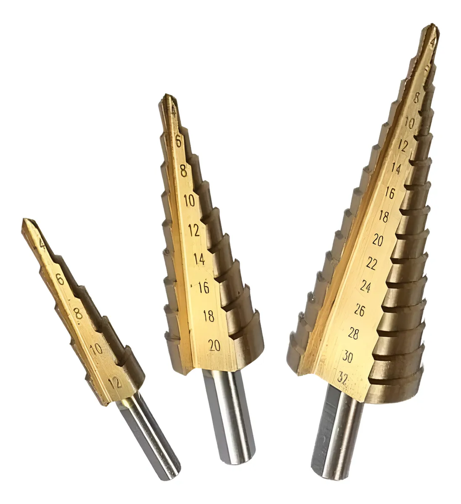 MECHAS ESCALONADAS HSS TITANIO EN SET X 3 PIEZAS RN 4-12MM / 4-20MM / 4-32MM GUILLER® RANURADO ESPIRAL INDUSTRIAL